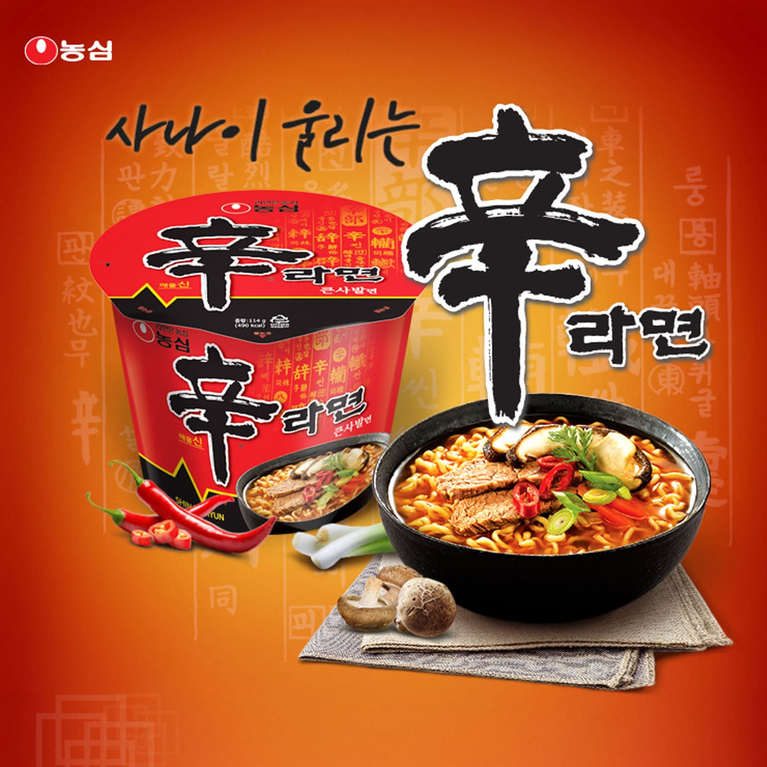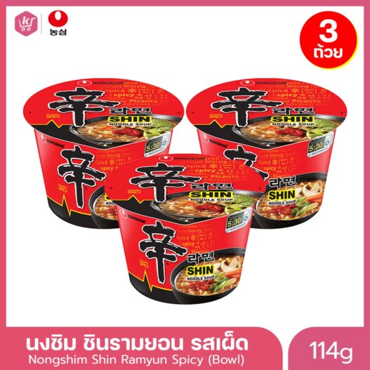 นงชิม ชินรามยอน รสเผ็ด ถ้วยใหญ่ มาม่าเกาหลี บะหมี่กึ่งสำเร็จรูป 114 กรัม